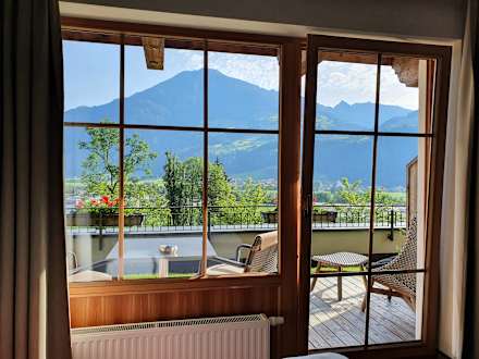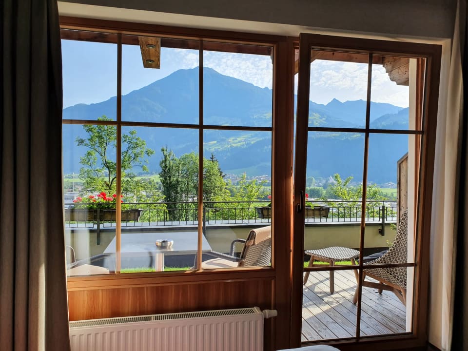 Blick aus dem Zimmer auf die Berge.