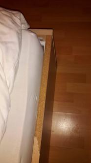Angeschrammtes Bett und Flecken am Boden