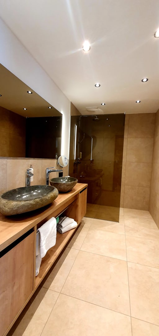 Das großzügige Bad ..