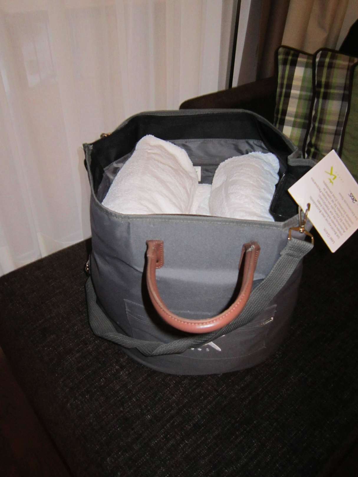 Tasche mit Bademänteln und Badeschuhen