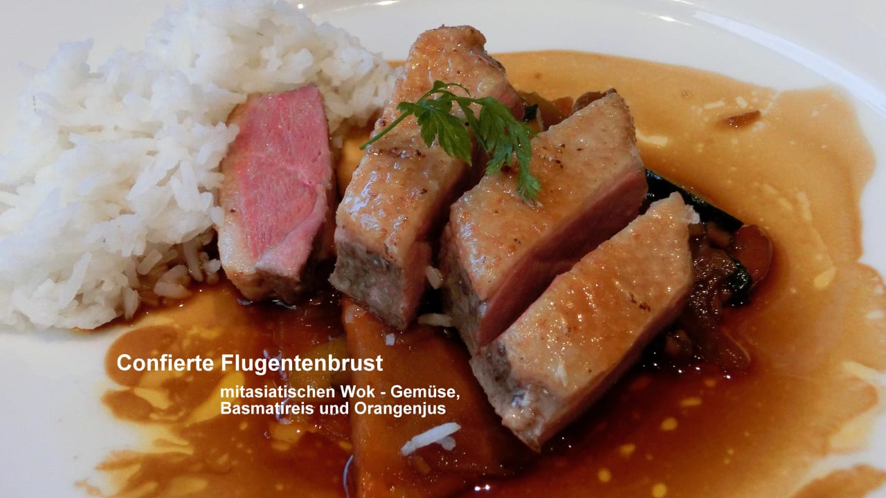 Mehrgängiges Menue mit Auswahlmöglichkeit. - hier die Möglichkeit eines Hauptgerichtes -