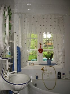 Das Badezimmer - Blick in den weitläufigen Garten