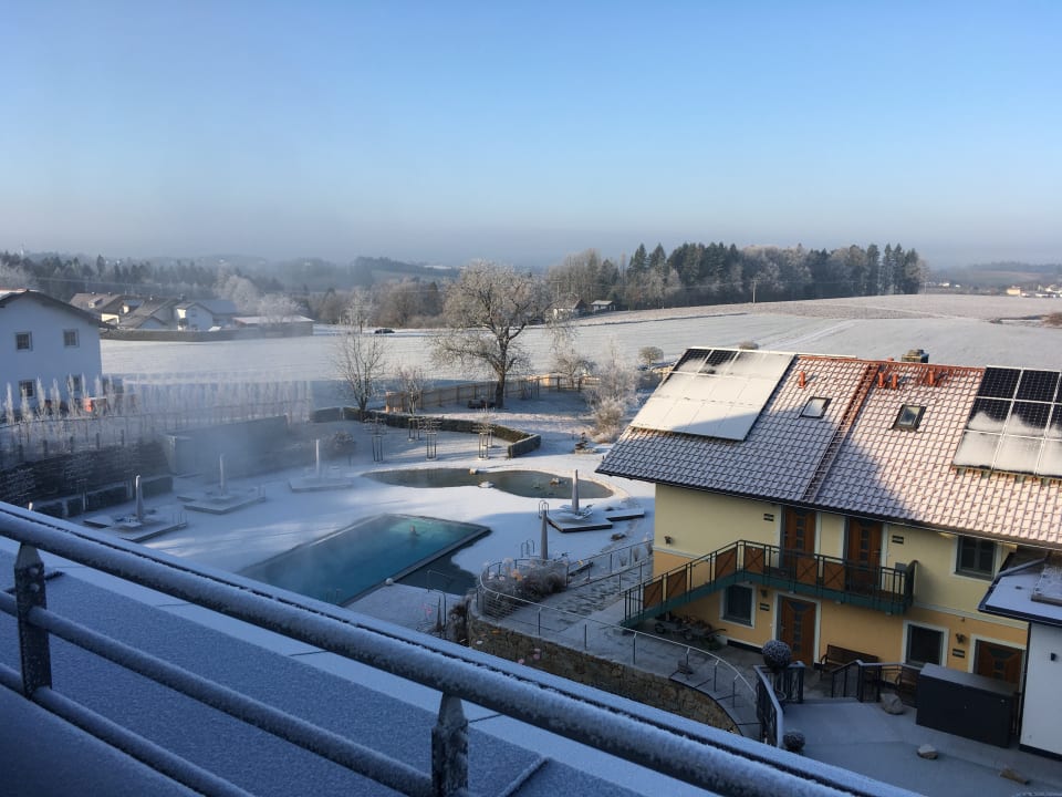 Ausblick von der Sky-Suite auf den 35° C warmen Pool