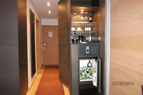 Mit Kühlschrank, Kaffeemaschine usw.