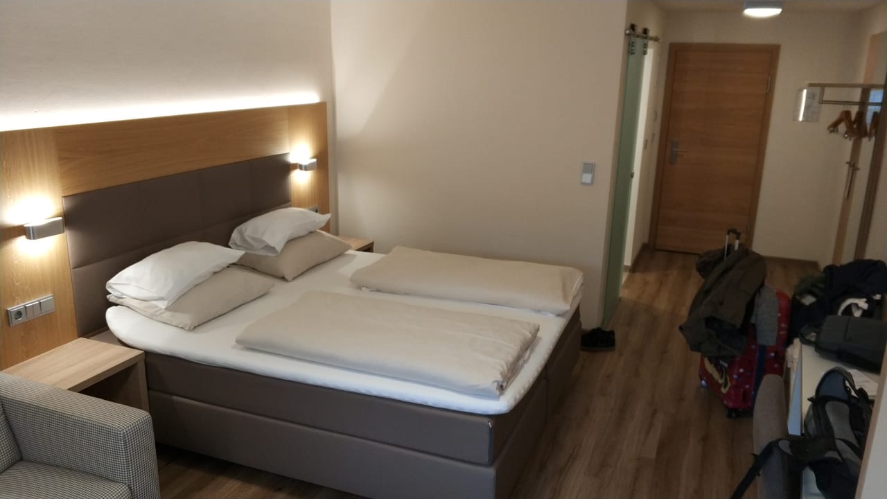 Modernes Zimmer mit sehr bequemem Boxspringbett.
