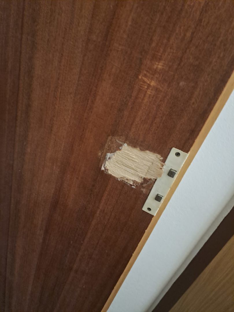 ZimmerBei den beiden Schlafzimmertüten fehlten die Schnallen, dafür waren sie verzogen und schlossen nicht und die Furnier war abgesplittert.
