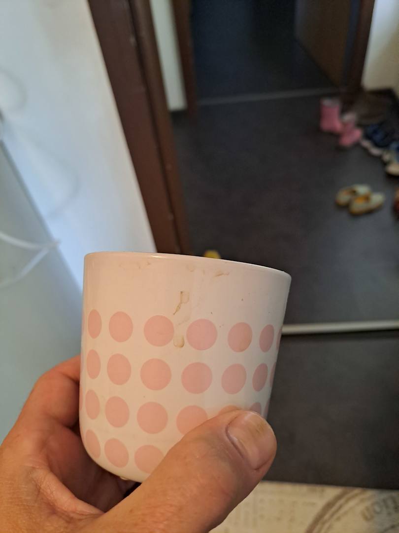 Auch außen war Kaffe. und einem zweiten waren Haare draußen... Wir haben beim Einzug alles Geschirr gewaschen und uns dazu entschieden hier nicht zu kochen und nur das Nötigste zu nutzen.