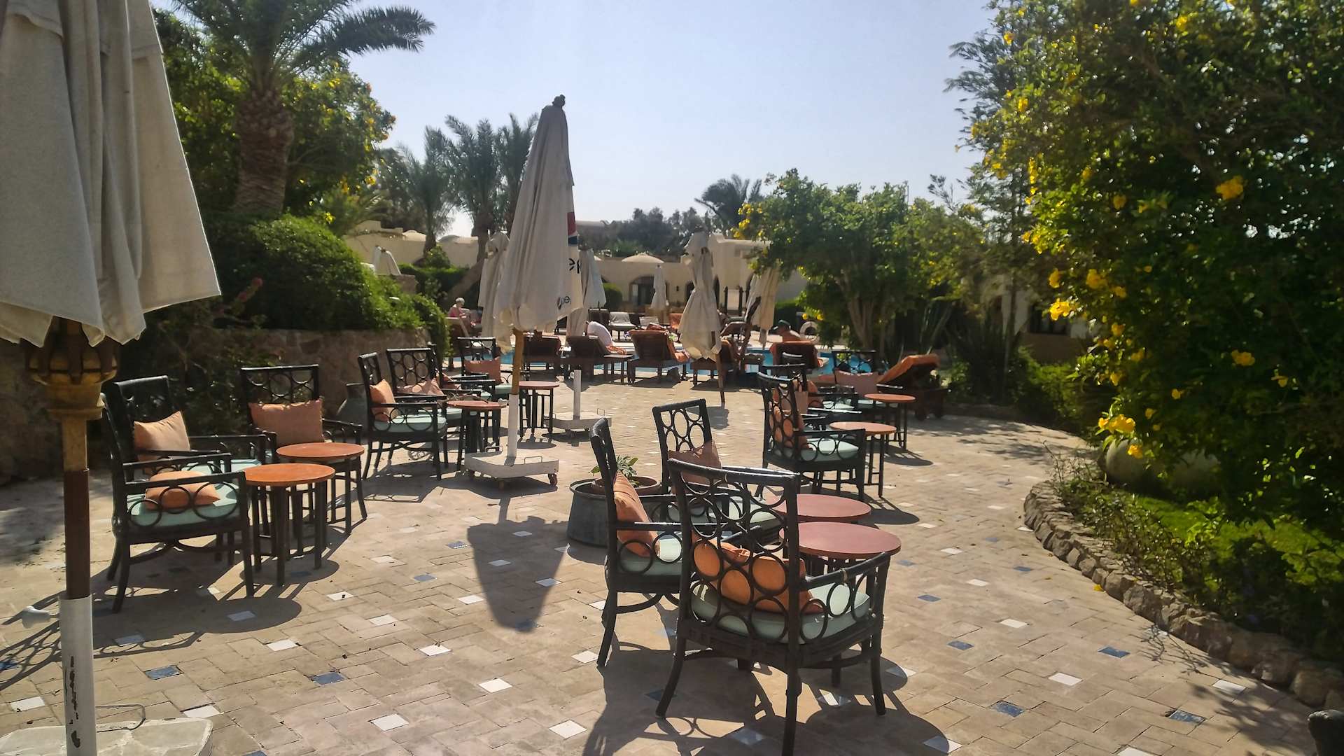Sitzgelegenheiten in der Nähe des Pools (mit Blick auf die LSitzgelegenheiten in der Nähe des Pools (mit Blick auf die Lagune)