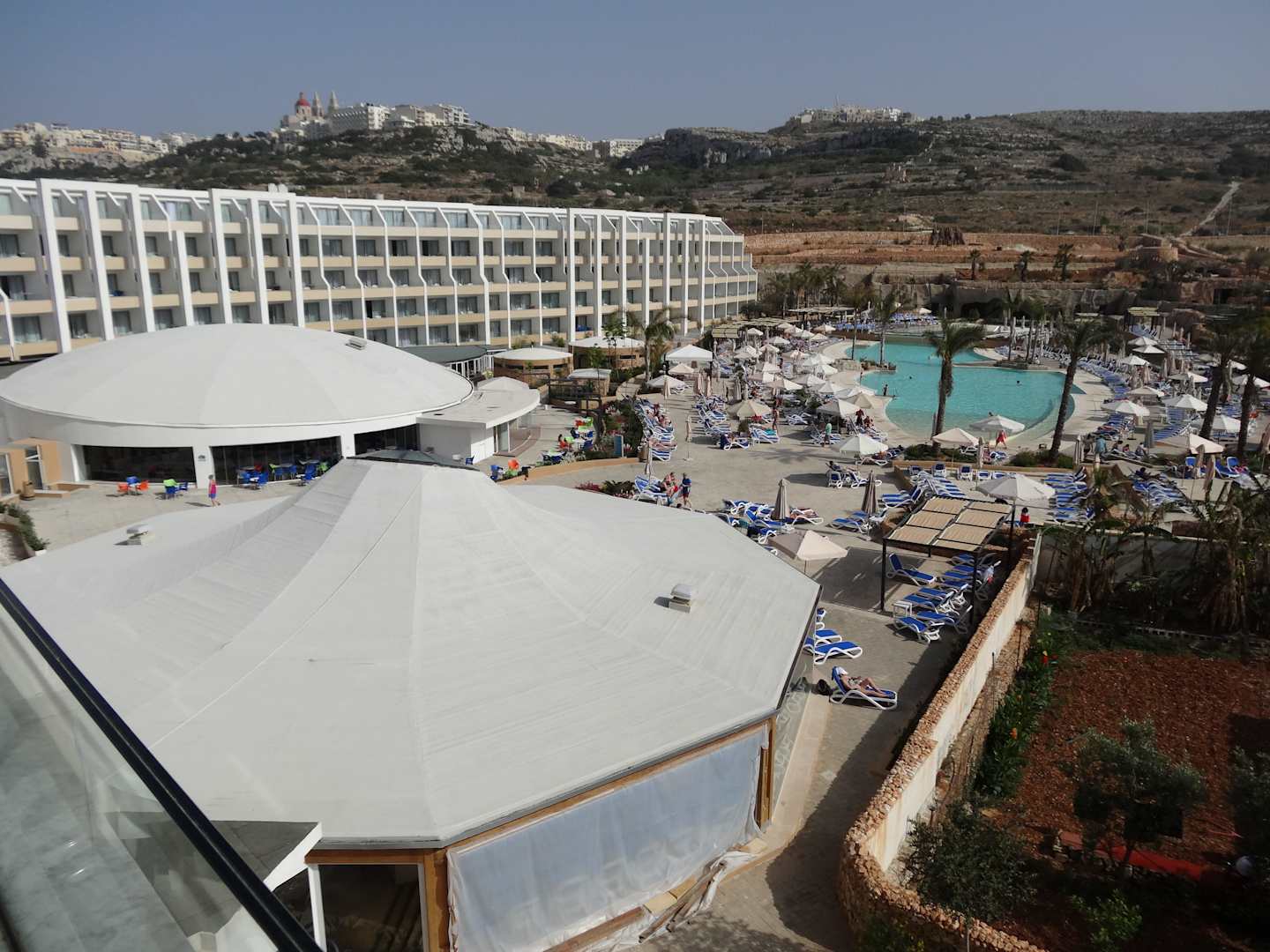 Au 1er plan, toiture piscine intérieure et jacuzzi