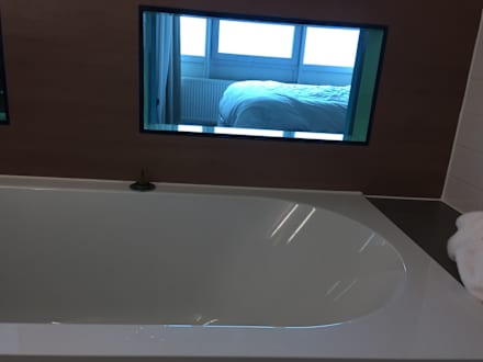 Blick von der Badewanne ins Zimmer (konnte durch eine Klappe geschlossen werden!)