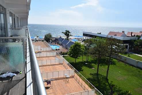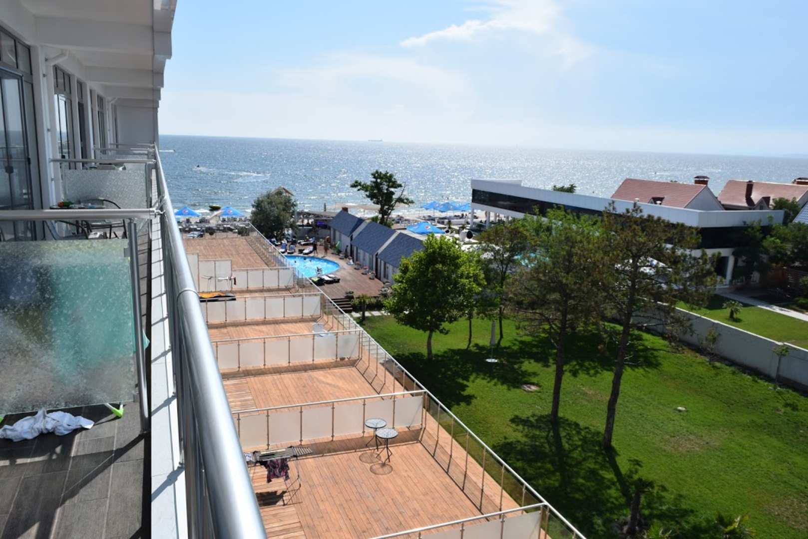 Blick vom Balkon unseres Zimmers aufs Meer