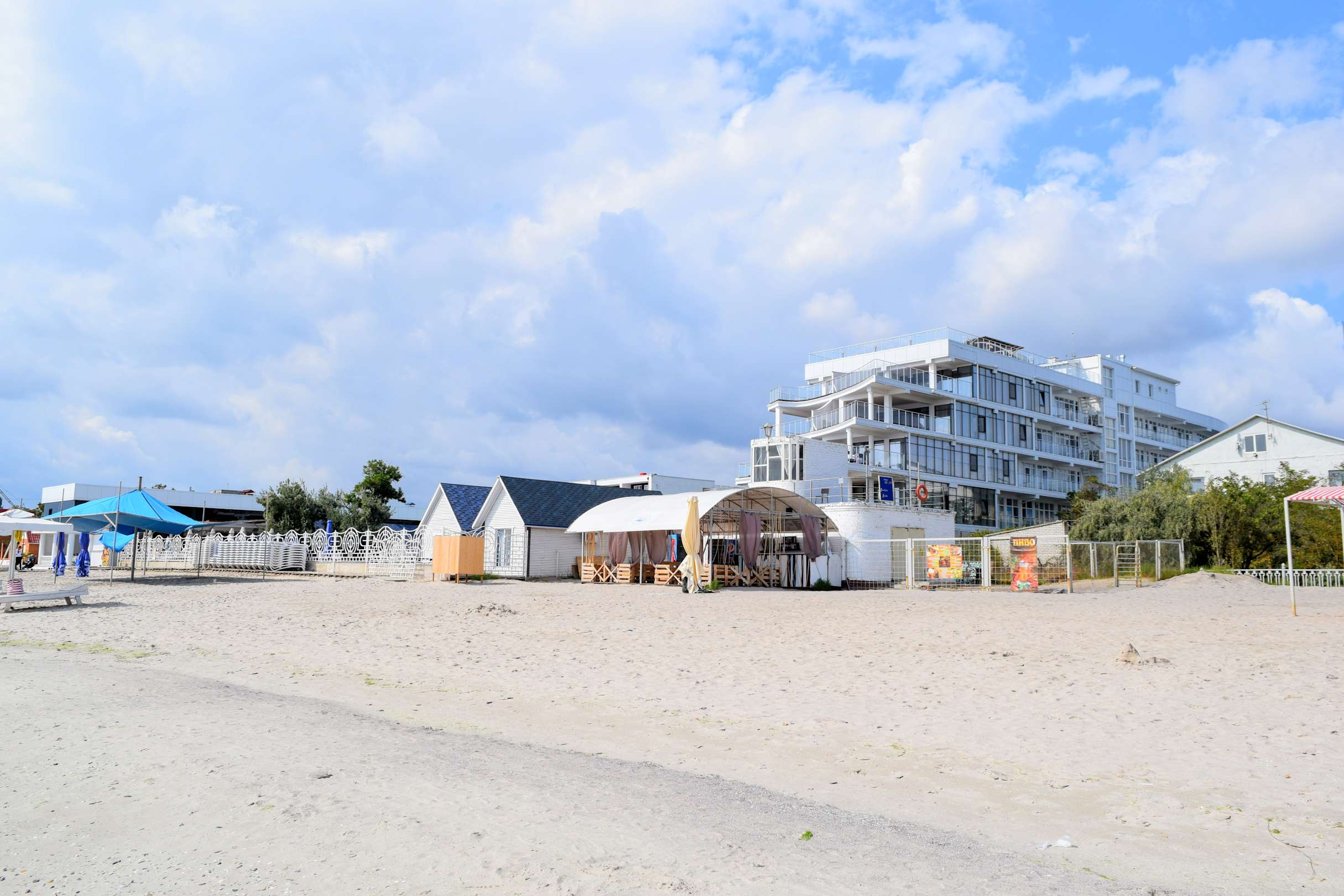 Hotelgebäude vom Strand aus gesehen