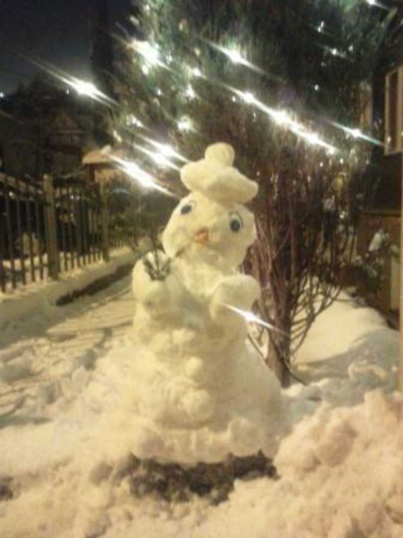 Bałwanek ulepiony przez najmłodszych gości