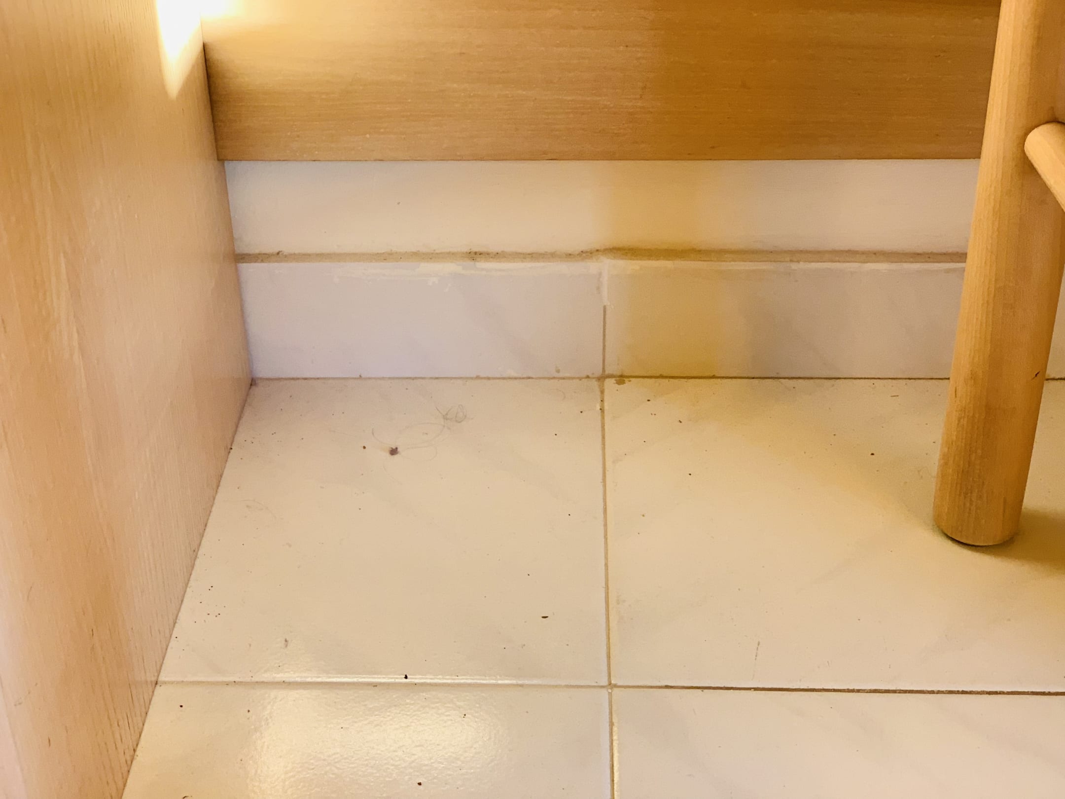 Unter dem Schminktisch, der Schmutz