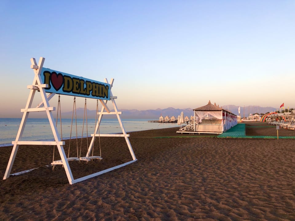 Im Hintergrund das Taurus Gebirge . Diese Cabanas am Strand kann man wie überall verteilt in der Anlage mieten . Bitte die Gästebetreuung kontaktieren .