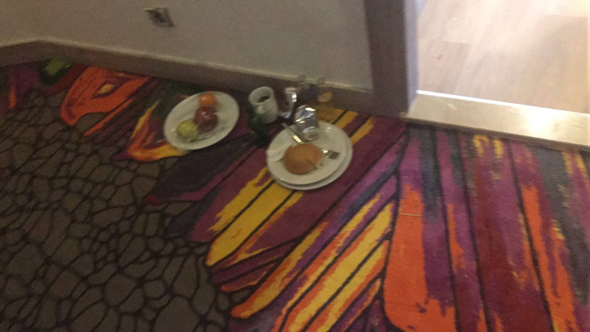 Dreckiges Geschirr und Essen im Flur.