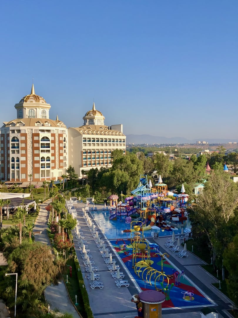 Blick vom großen Rutschen Park auf das traumhaft schöne Kinderparadies für die kleinen Urlauber !