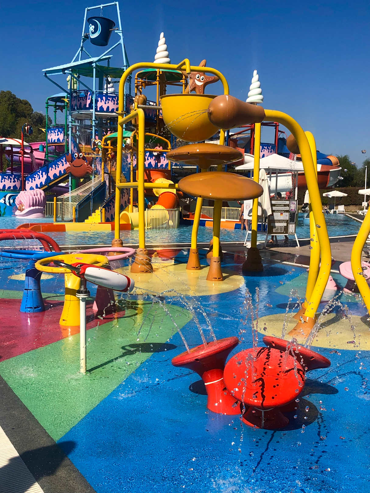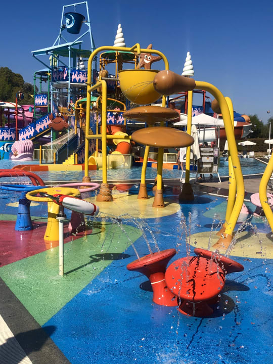 Wasserpark im Vordergrund und Rutschen Park für kleinere Kinder