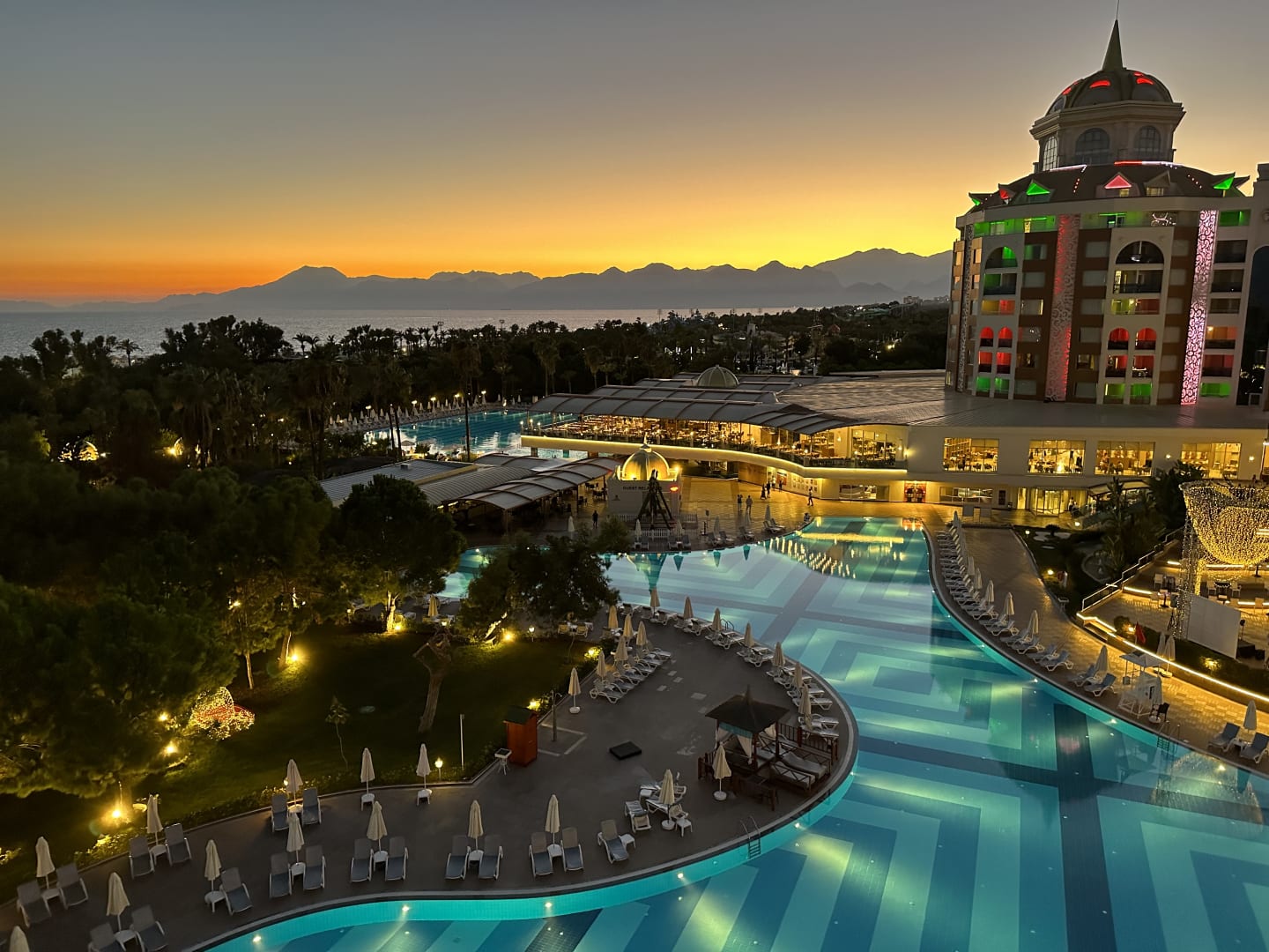 Blick von unserem Balkon bei Sonnenuntergang auf das Taurus Gebirge !