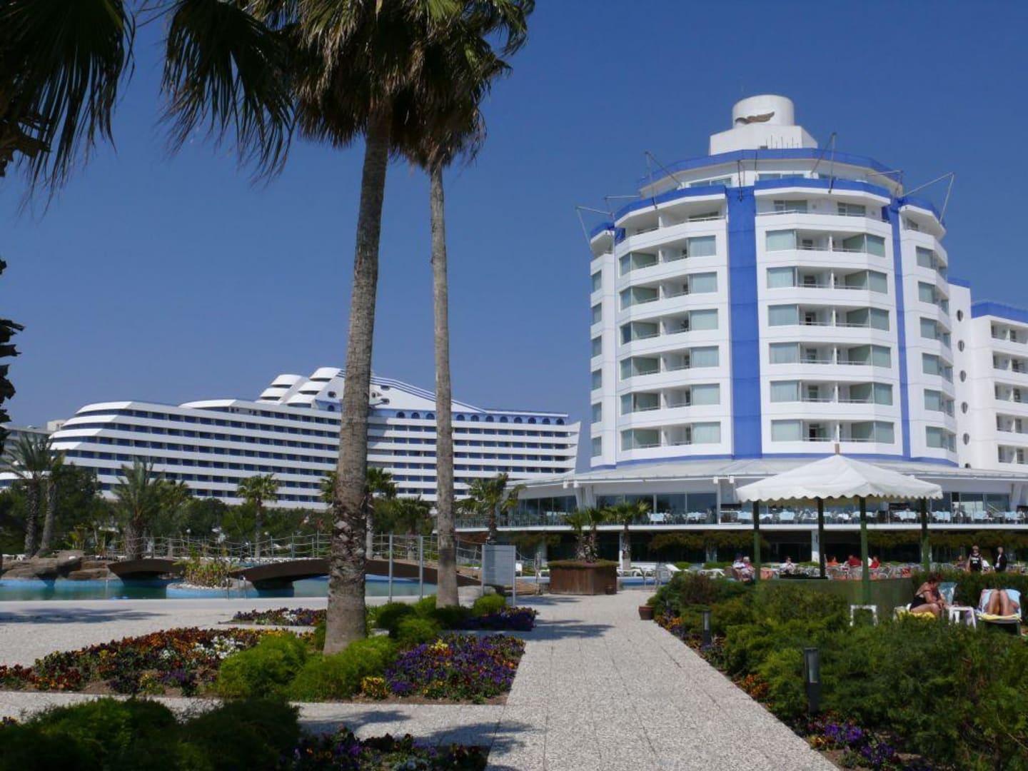 Blick auf Titanik und Lares ParkAus der Parkanlage gemachtes Foto von beiden nebeneinander liegenden Hotels.