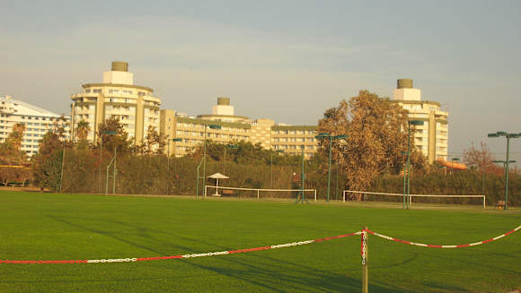 Das Hotel von der Laufstrecke aus
