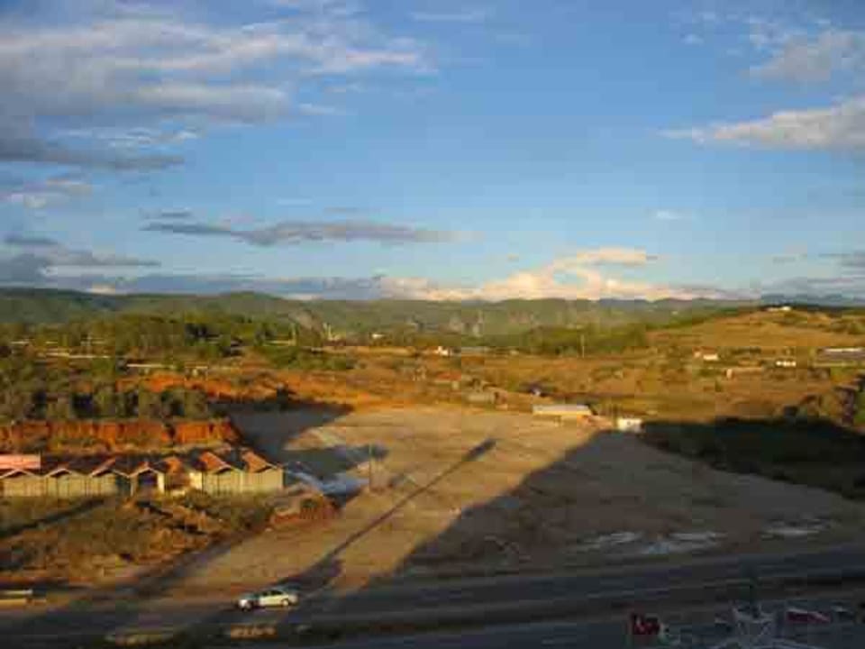 UmgebungSo sieht es aus, wenn man aus dem Delphin Deluxe Hotel kommt. Gegenüber ein großer Platz auf dem einmal die Woche der Markt stattfindet, ein paar leere Baracken und im Hintergrund das Gebirge. Dies ist der Ausblick wenn man ein Zimmer zur Landseite hat.