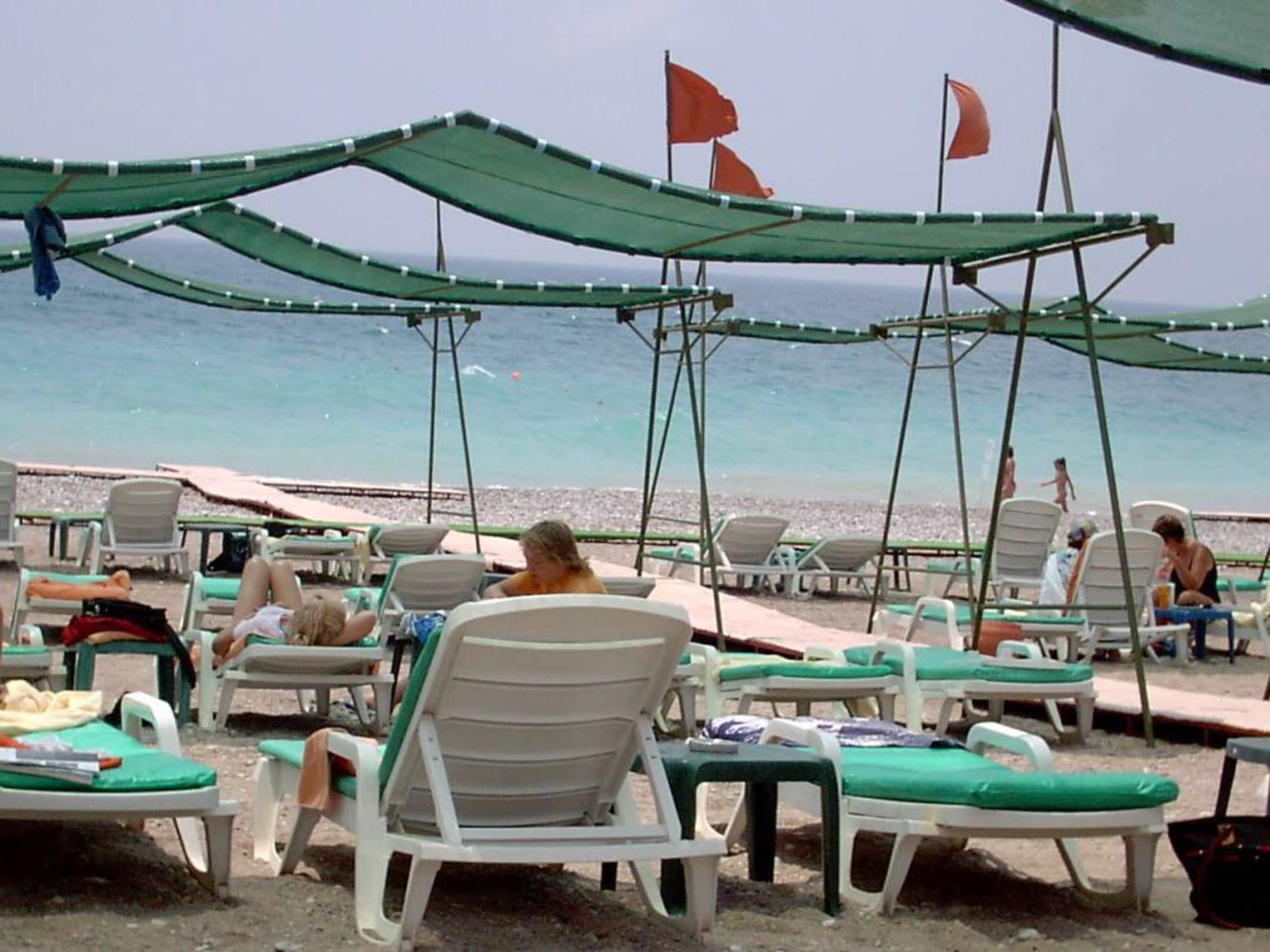 Strandliegen und Sonnensegel am Strand vom Delphin