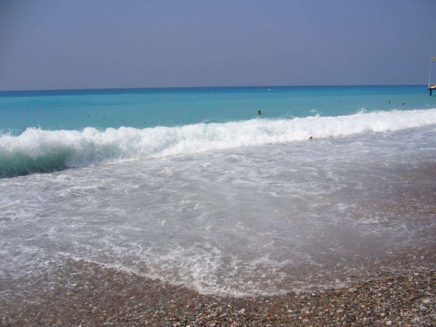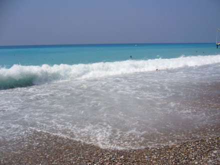 an zwei Tagen war im August aufgrund der hohen Wellen das Baden im Meer nicht ratsam, bitte beachten sie auch die Kieselstein, geeignetes Schuhwerk ist zu empfehelen