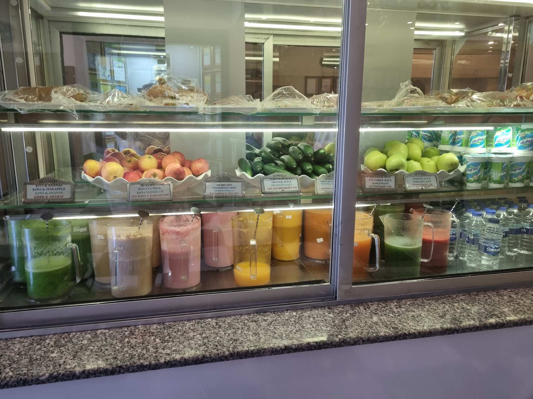 Überall stehen frisch gepresste Säfte