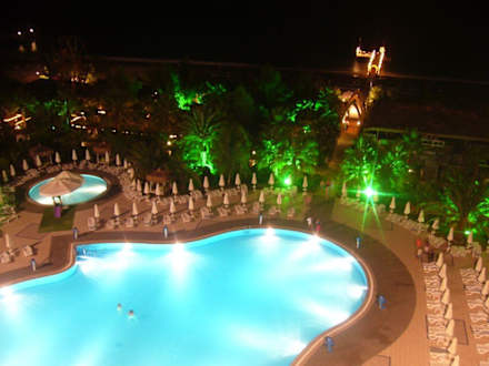 Poolanlage bei Dunkelheit