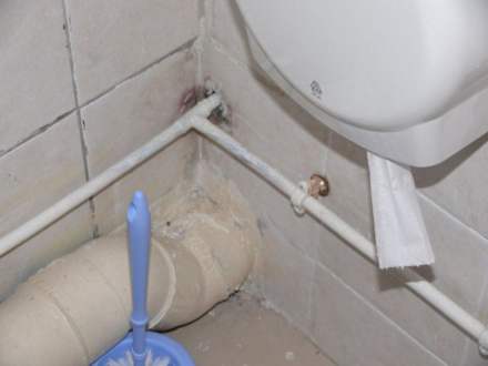 Rury w wc - grzyb na ścianie