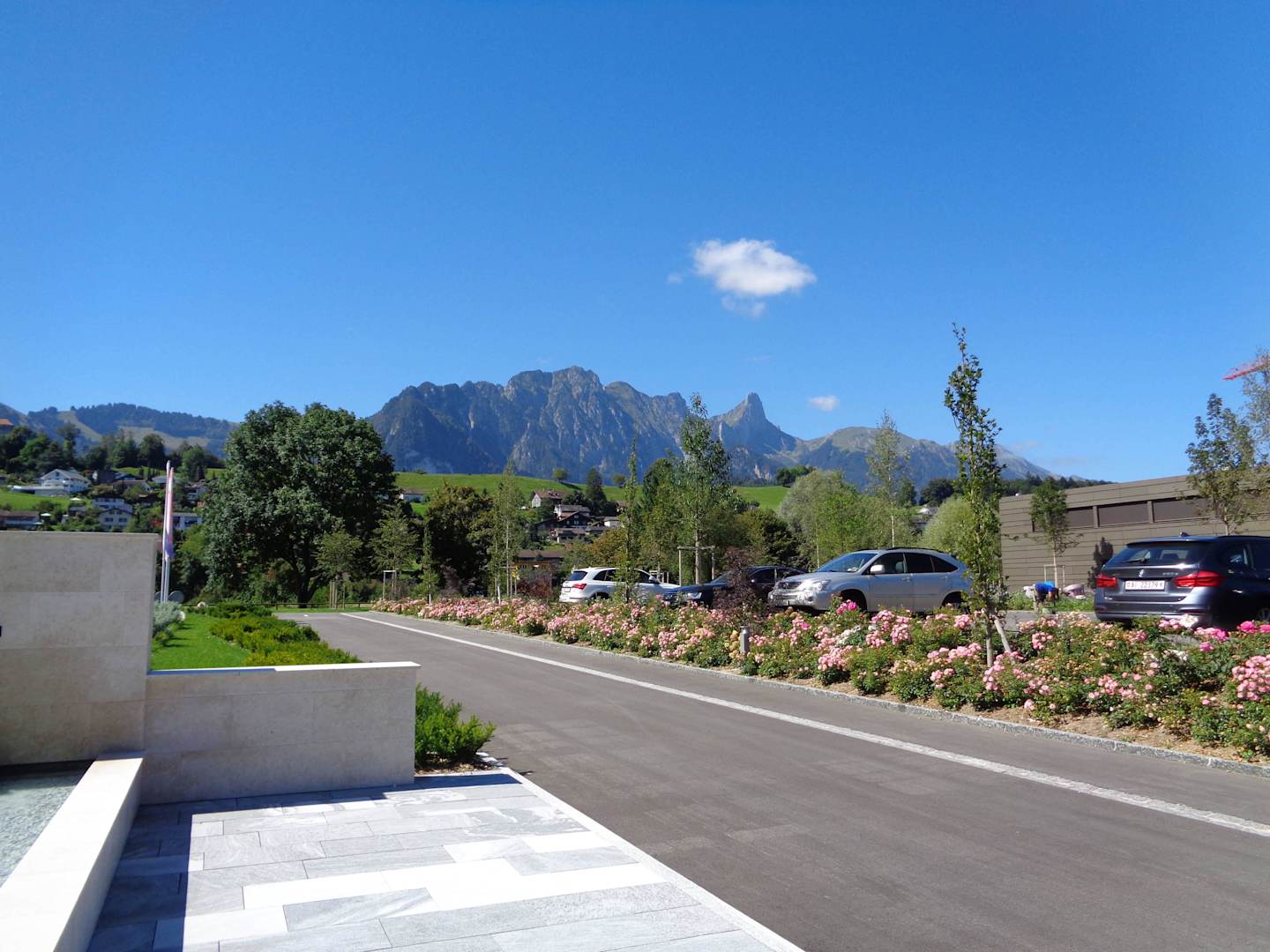 Vor dem Hotel und Parkplatz