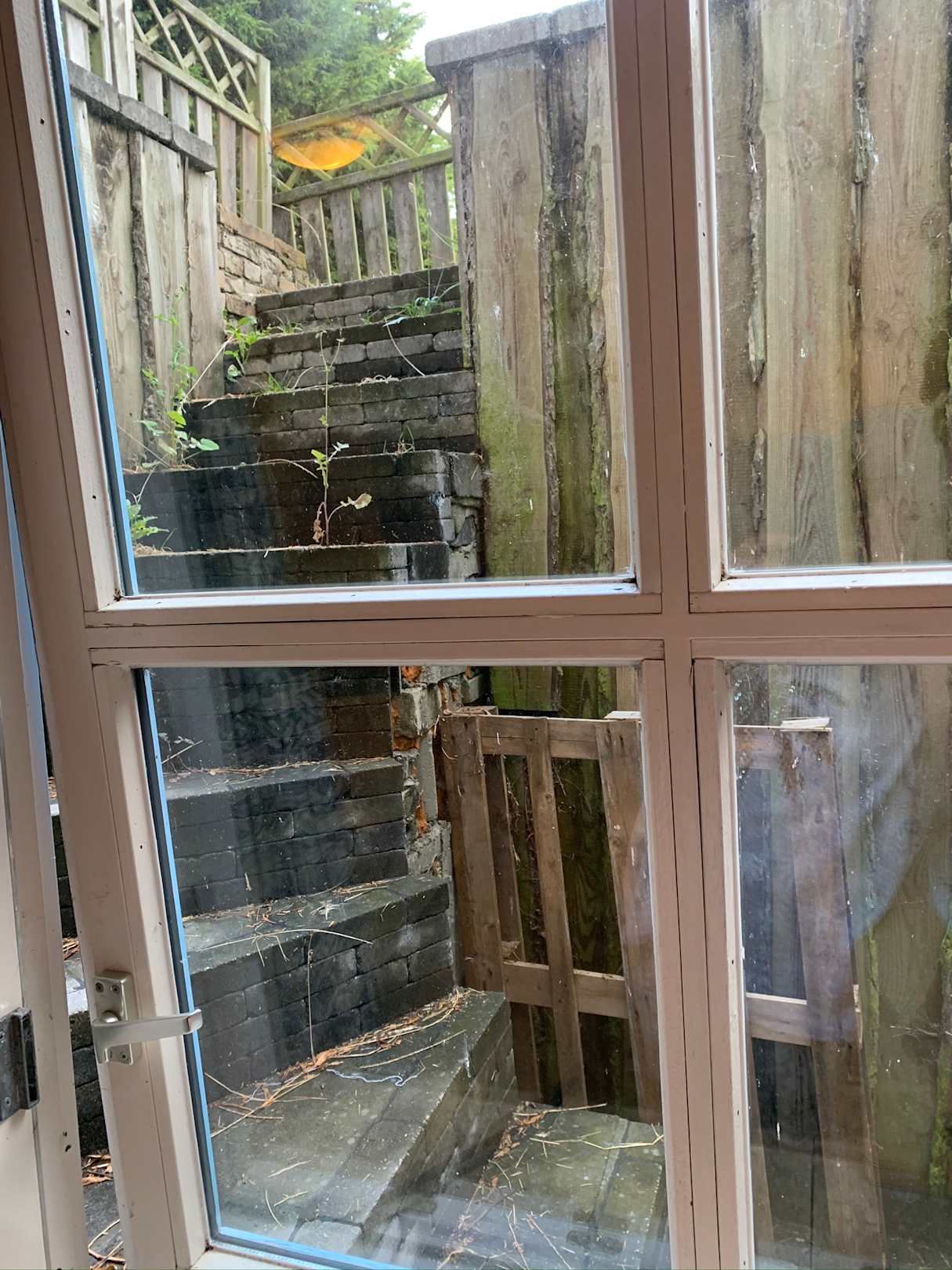 Treppenaufgang aus der Souterrain Etage = Die Stufen sind locker und voller Unrat.