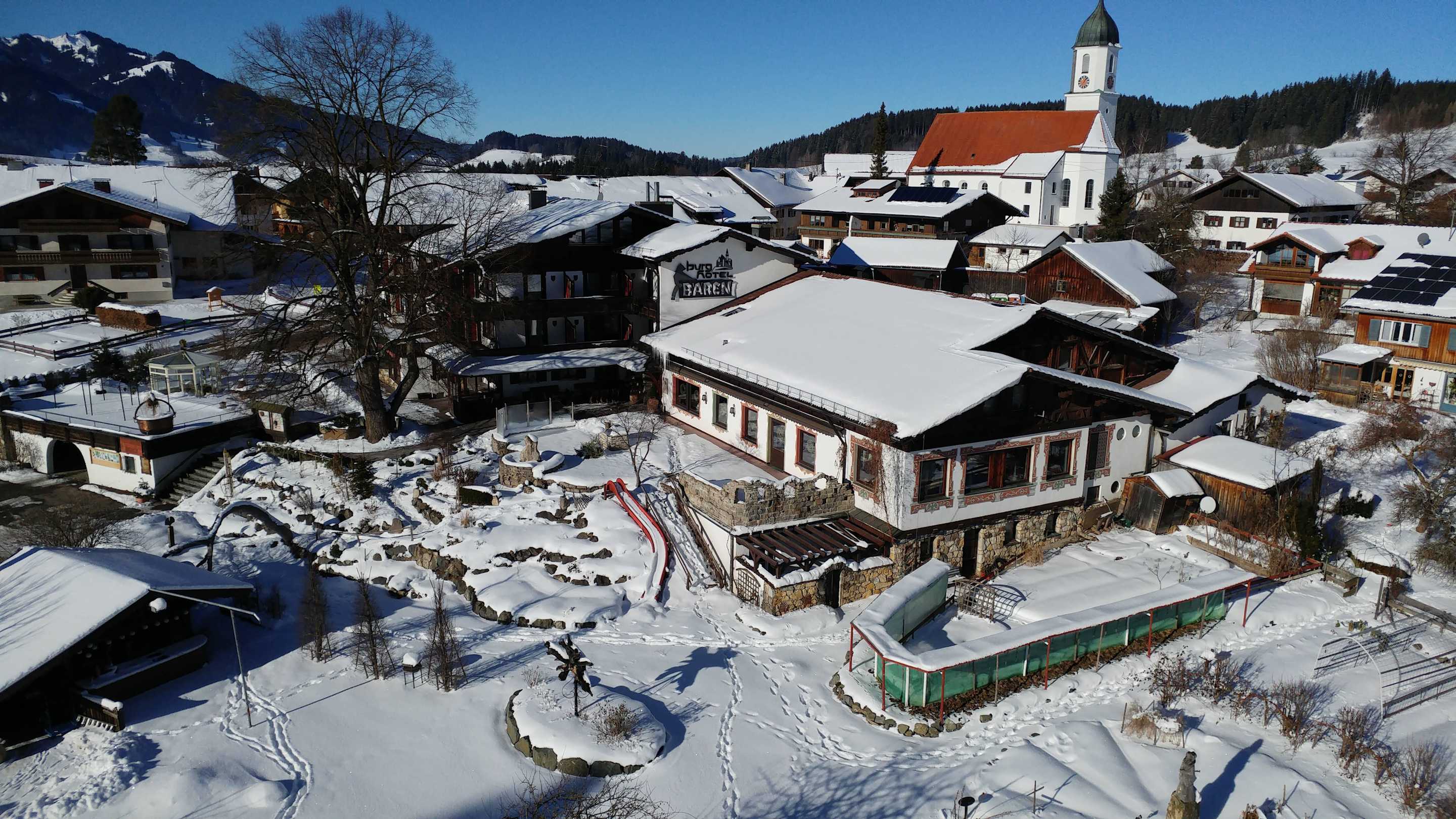 Das Hotel von obenDas verschneite Burghotel Bären von oben ;-)