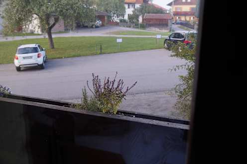 Von Balkontür Blick von der Balkontür zur Strasse ca.5 m entfernt.Gegenüber Parkplätze für Kindergarten.