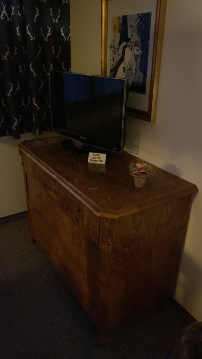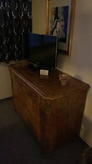 Alte Komode mit kaputten Schubladen und mini Fernsehen
