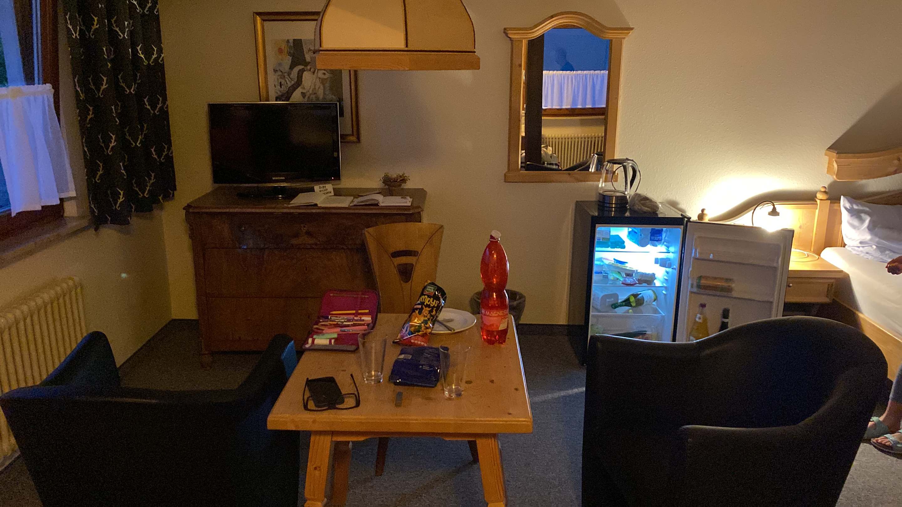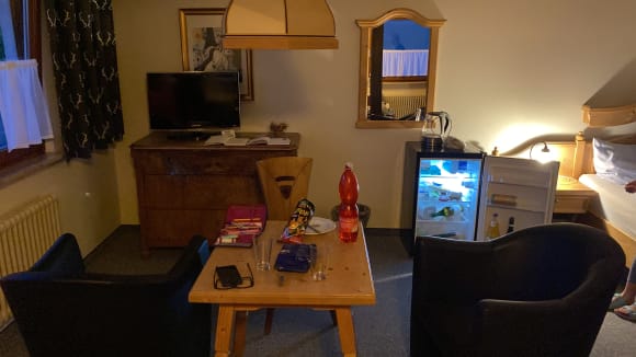 Wohnzimmer mit Küchenschränk neben dem Bett…alles alt