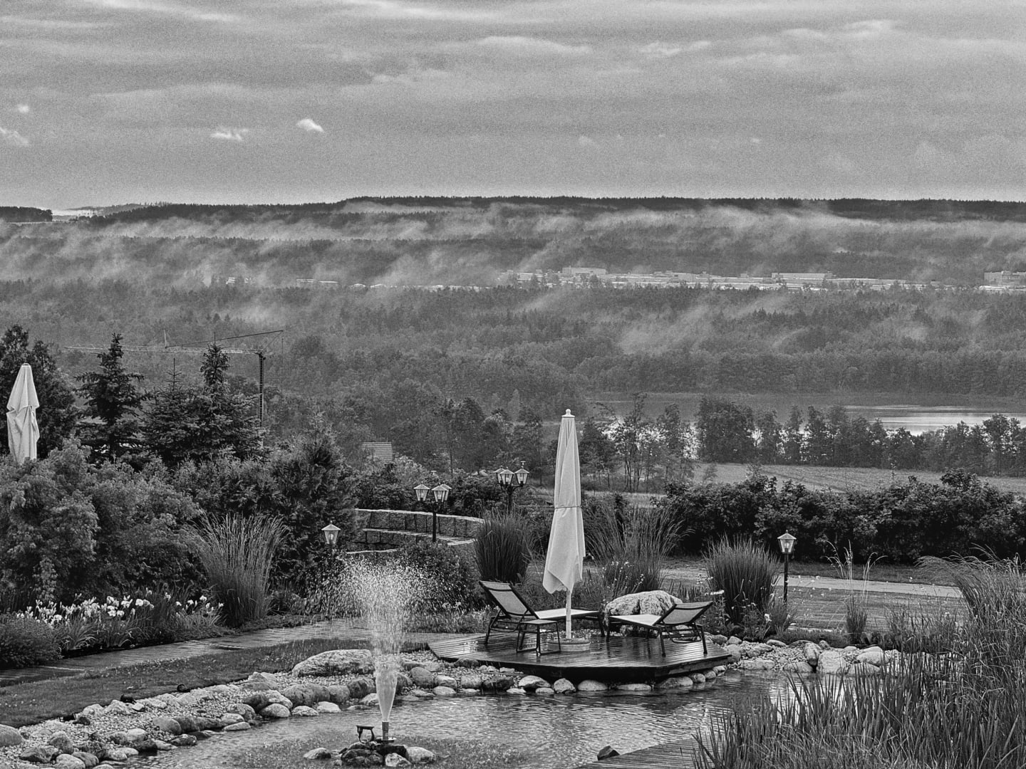 AußenansichtDer Dampf über dem Insustriegebiet von Wackersdorf ist nur die Feuchte aus dem Wald nach dem Regen.