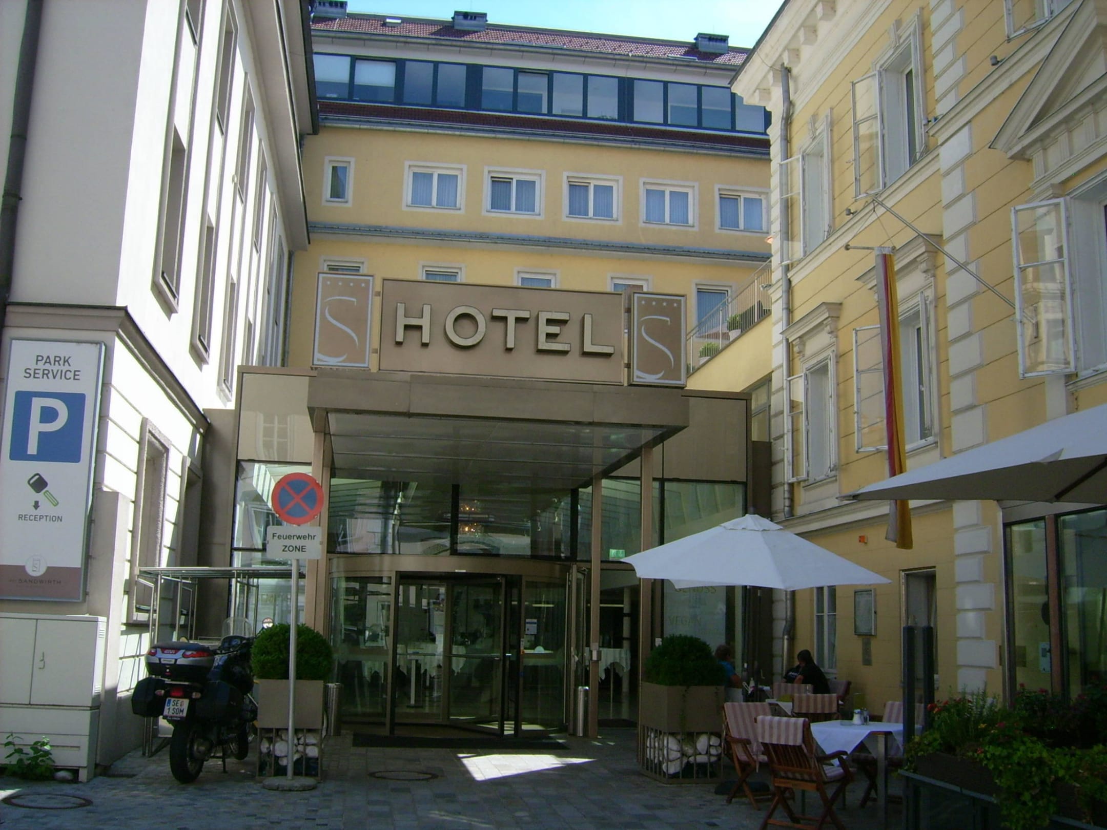 Hoteleingang , kleines Cafe