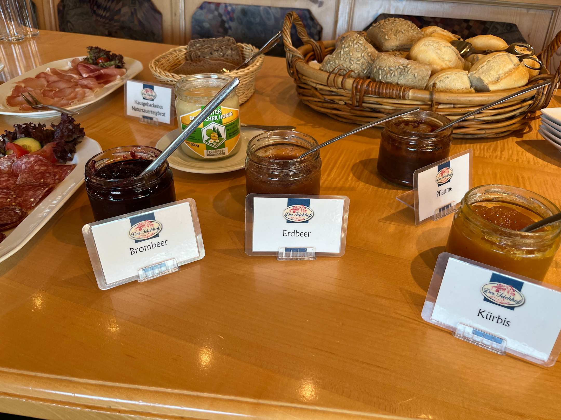 Frühstück mit selbstgemachten Marmeladen und Sauerteigbrot