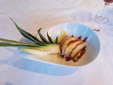 Erdbeereis mit Ananas und Schoko Soße