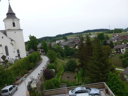 Blick zur Kirche und Duftgarten