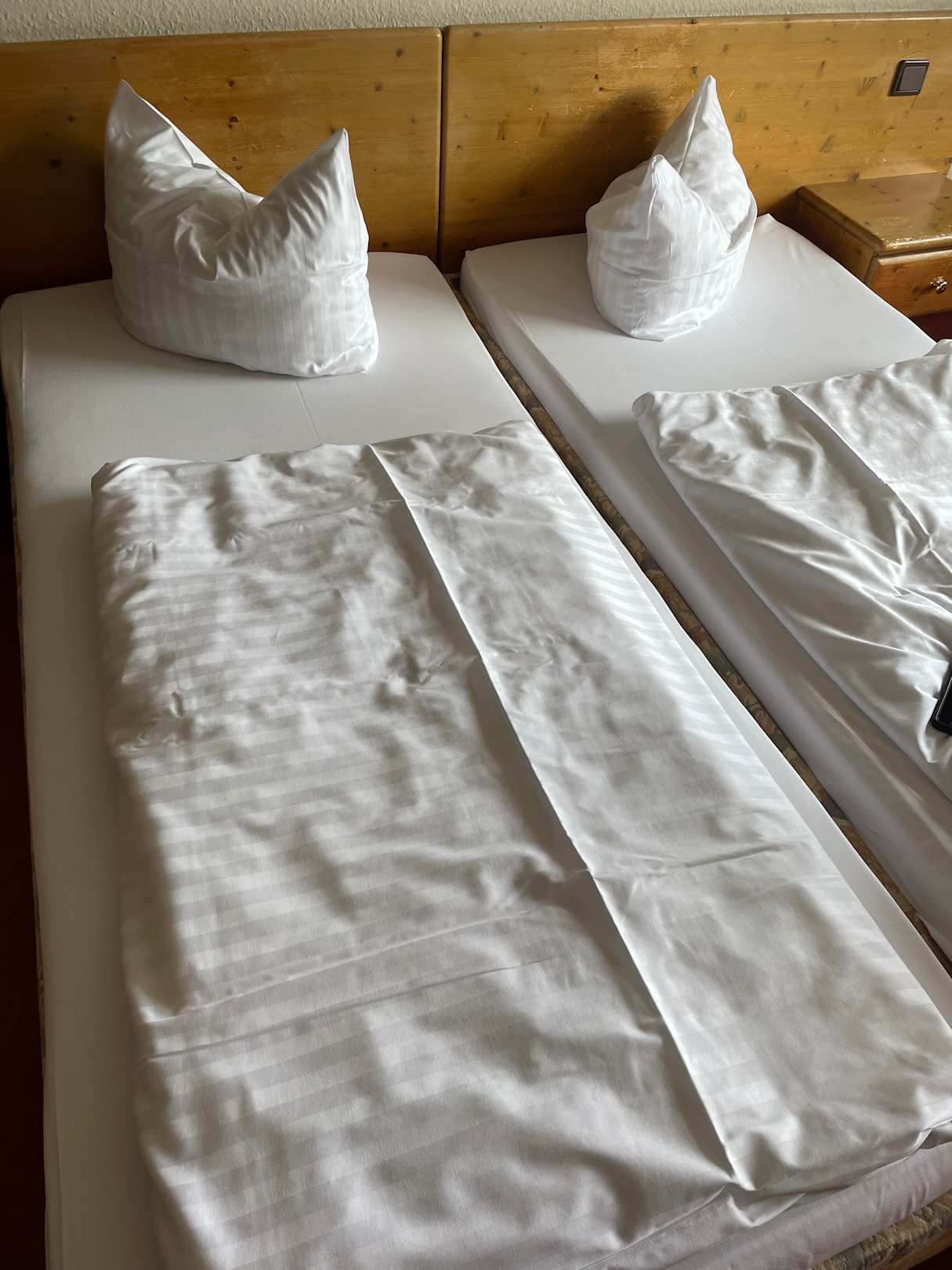 „Doppelbett“, leider nur zwei zusammen geschobene Einzelbetten mit einer harten Kante in der Mitte