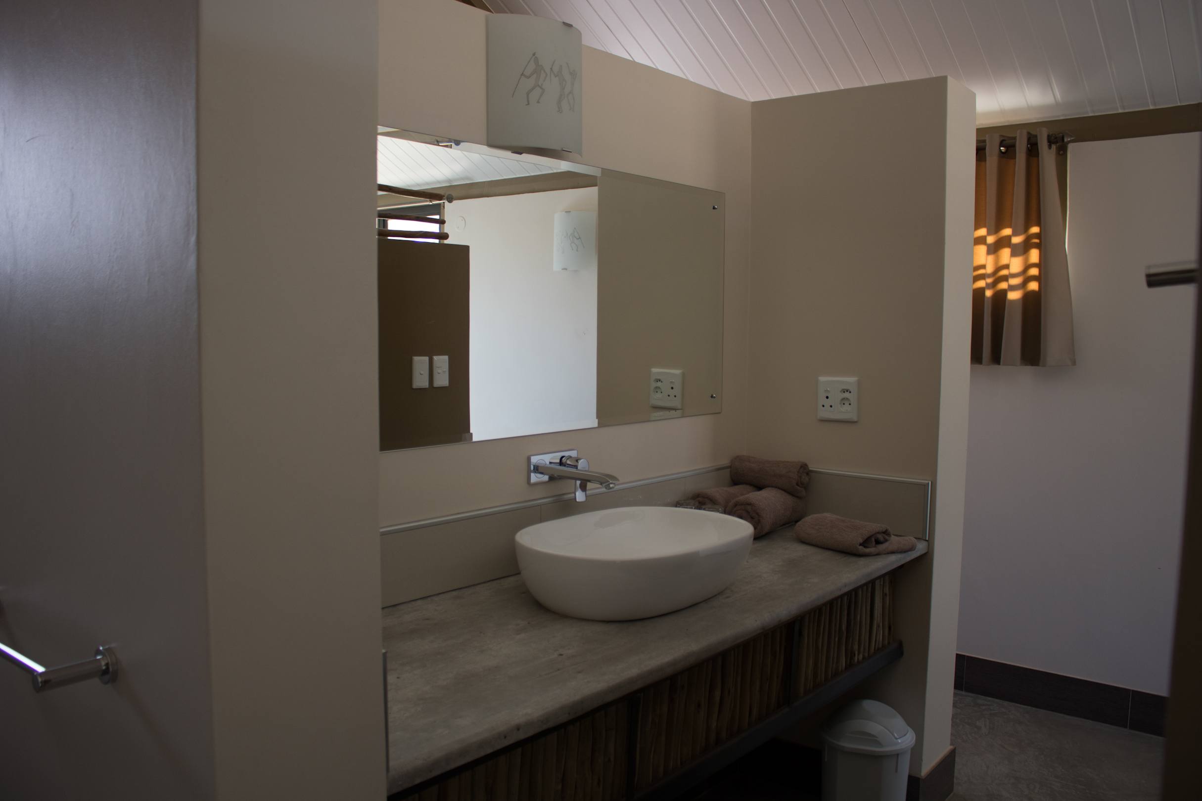 Waschgelegenheit links um die Ecke Dusche, rechts um die Ecke WC