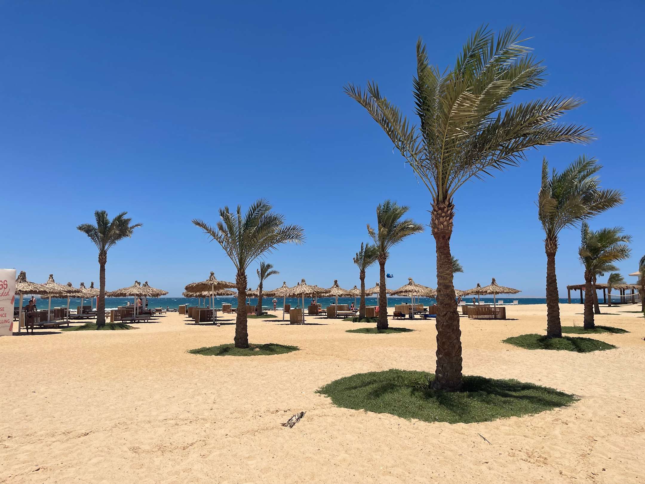 Liegebereich und ganz links der Pavillion für Yoga direkt am Meer