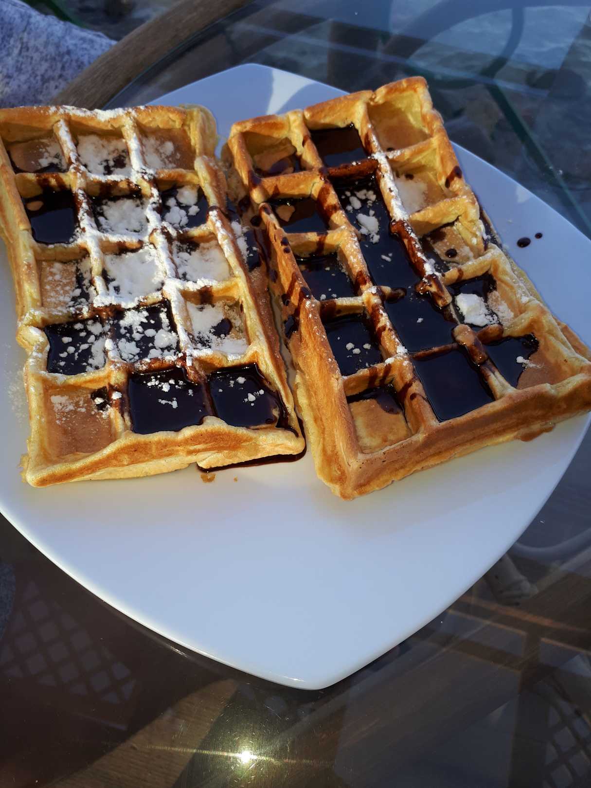 Waffeln mit Honig und Schokolade