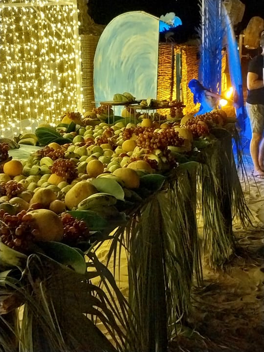 Wunderschöne Beachparty am Strand mit leckeren Früchten, Cocktails und Livemusik