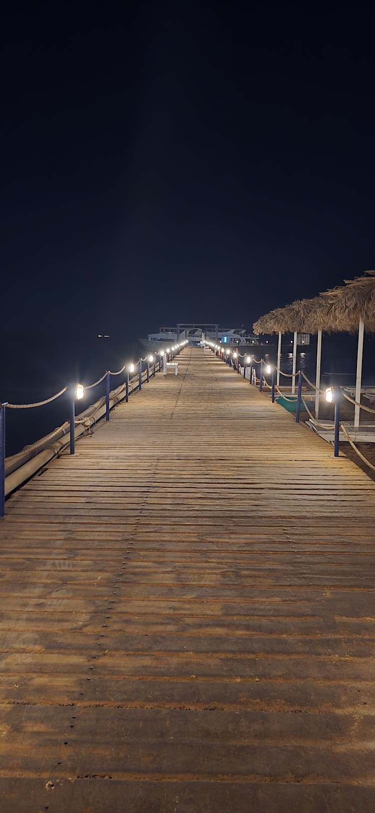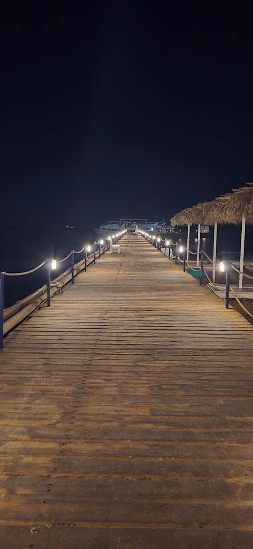 Aussicht zur Steg wo weit ins Meer geht und wo man an die Tour booten einsteigen kann