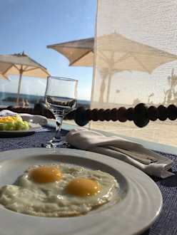 Tolles Frühstück im Fischrestaurant mit Meerblick