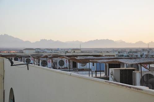 Die Klimaanlagen auf dem Dach des Hotels